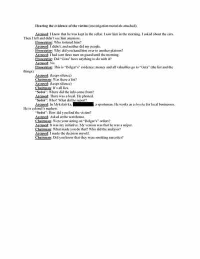 What is not included in the documents are the names of the individuals who made up the firing squad -- referred to as the “garrison” -- that shot Pichko, Lukyanov, and Slavov. A source with knowledge of the “garrison” members, speaking to RFE/RL on the condition of anonymity for fear of reprisals, described them as merely “foot soldiers.”
