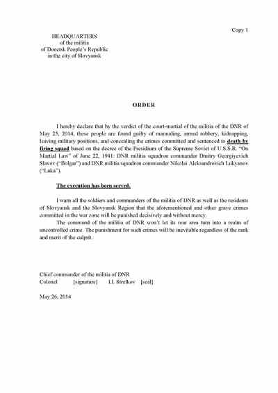 - 4 Girkin signs off on the execution order using his nom de guerre, Strelkov.