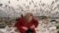 Alexandr Sprado works on a yurt's distinctive roof opening (RFE/RL)